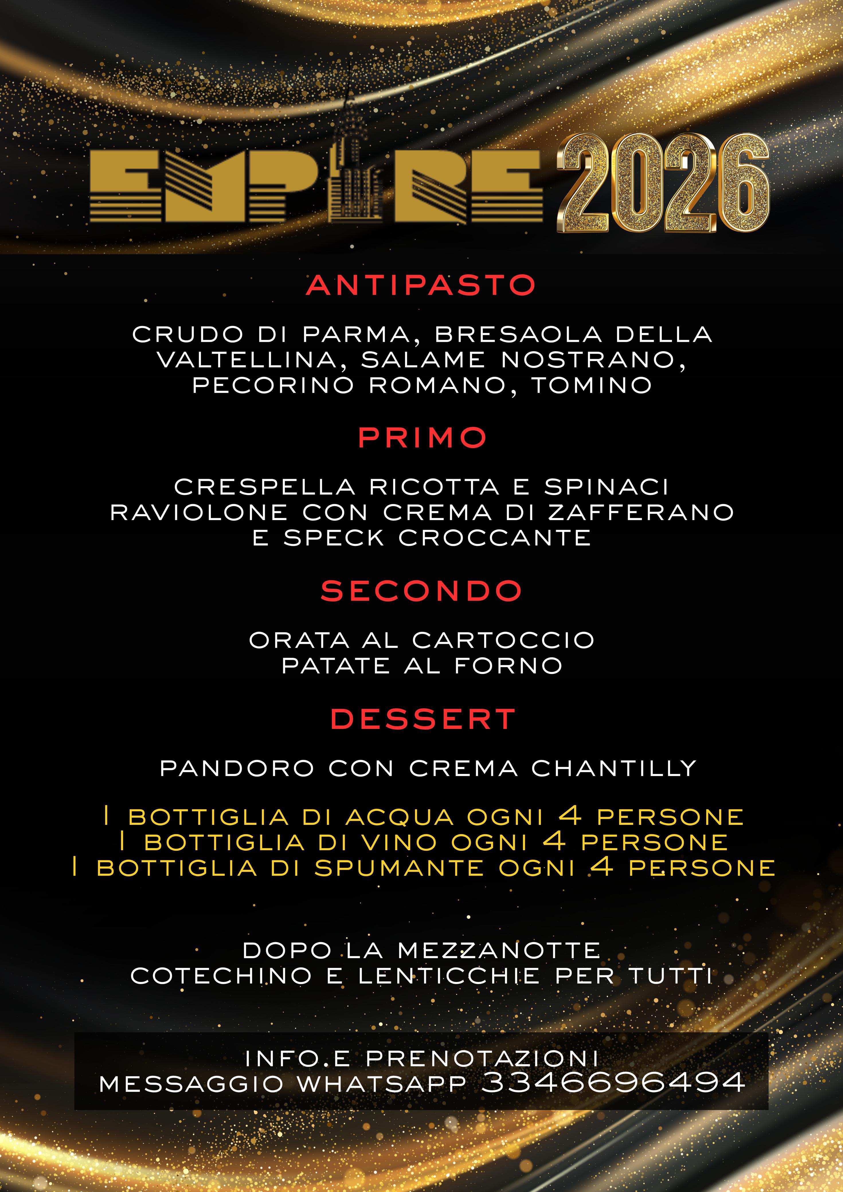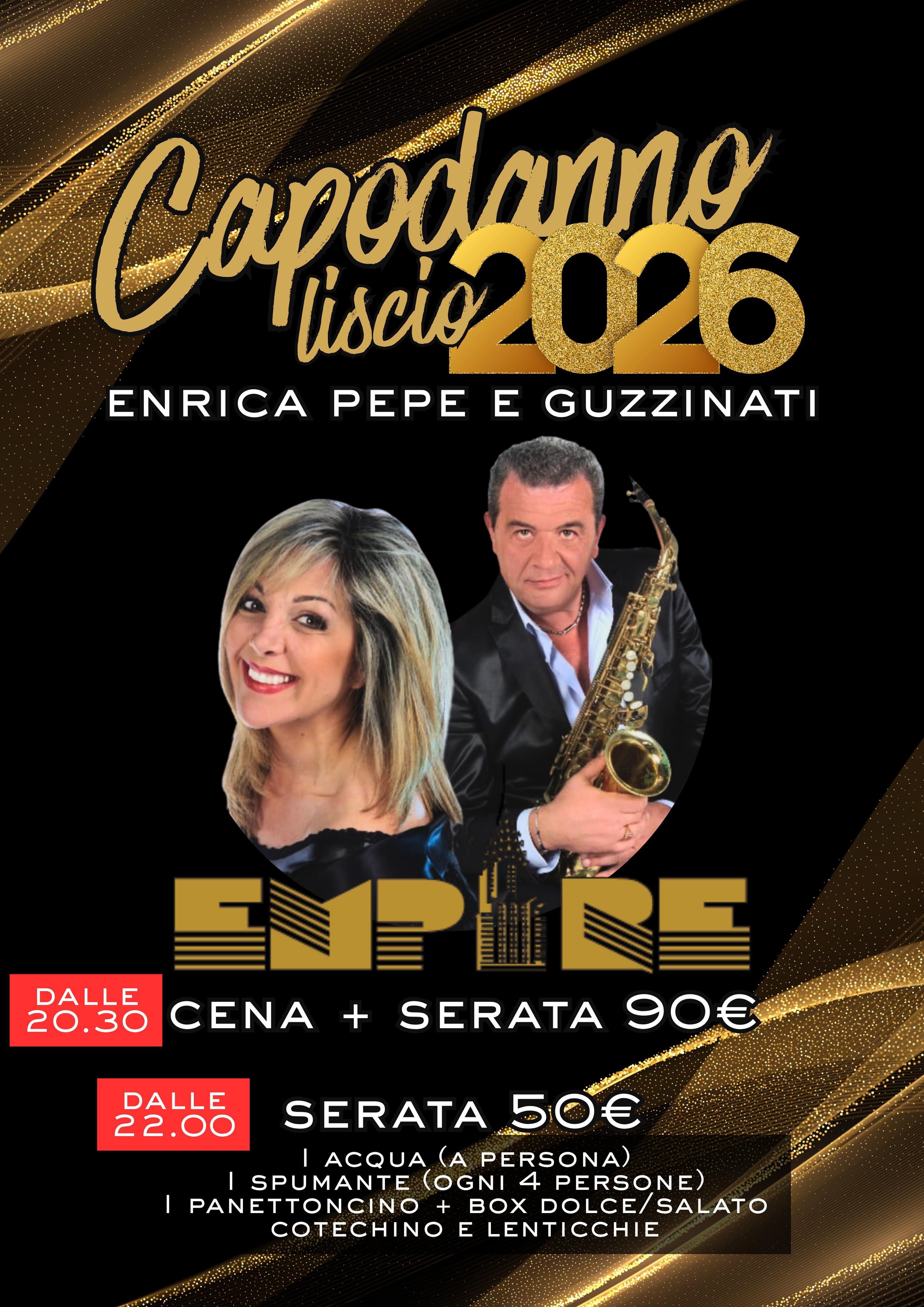 Nel prezzo è compreso: INGRESSO- GUARDAROBA - CENA (antipasto, primo , secondo con contorno , dessert, acqua e vino 1 bott. ogni 4 persone )